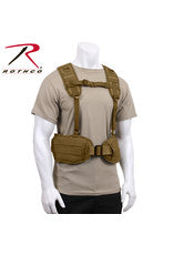 Rothco's Tactical Battle Harness provides you with a superior load bearing solution that will keep your battle belt from slipping down in combat. The harness attaches to Rothco’s Battle Belt (item #10679 - which is sold separately) with 4 durable webbing straps that connect to the D-Rings located on the corresponding battle belt. The battle harness features padded shoulder straps and yoke for added comfort. Each strap of the harness features elastic loops, 2 MOLLE loops and plastic D-Rings which have been designed to provide you with the ability to add quick-access attachments. The back panel of Rothco's Battle Harness is equipped with a breathable double-layer mesh backing for superior comfort and load bearing support. In addition, the back panel features MOLLE loops and 8.5" x 4" loop field, and drag handle. Rothco’s Battle Harness works in conjunction with our Battle Belt and Riggers belt (both sold separately) to create the ultimate low-profile tactical load bearing solution for Airsoft Players, Law Enforcement and Tactical Operators.